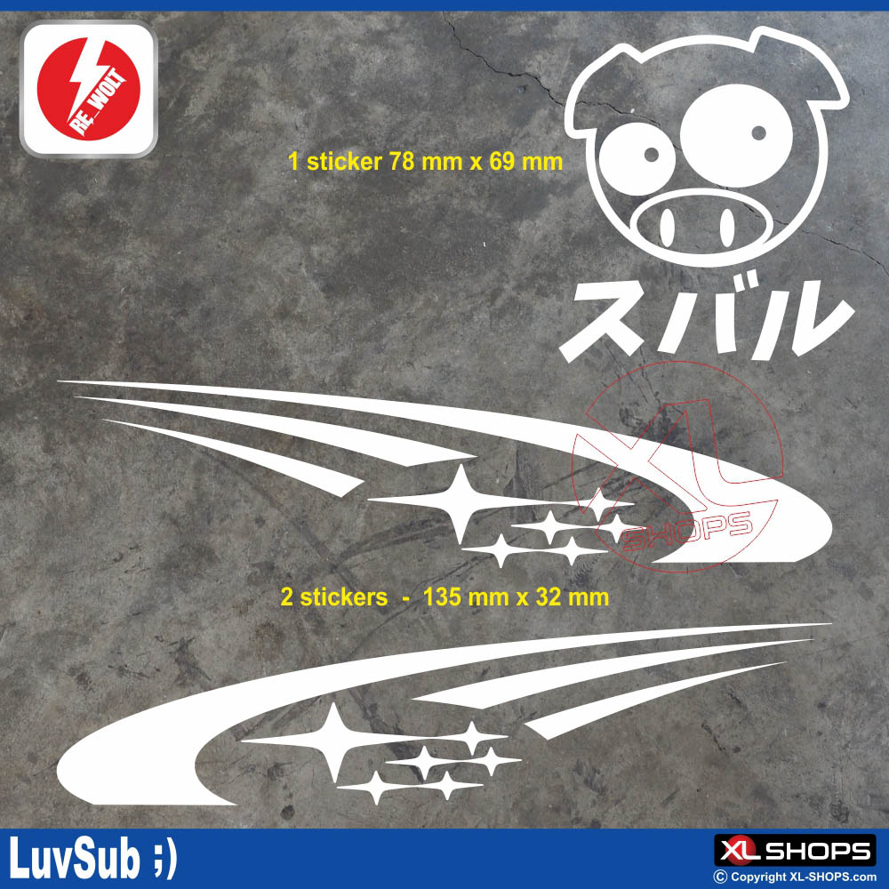 Ref. : 4812 Dimension : 2 stickers 135 x 32 mm + 1 sticker 78 x 69 mm Compatible : SUBARU Compatible Models : Impreza Forester BRZ XV Levorg Outback